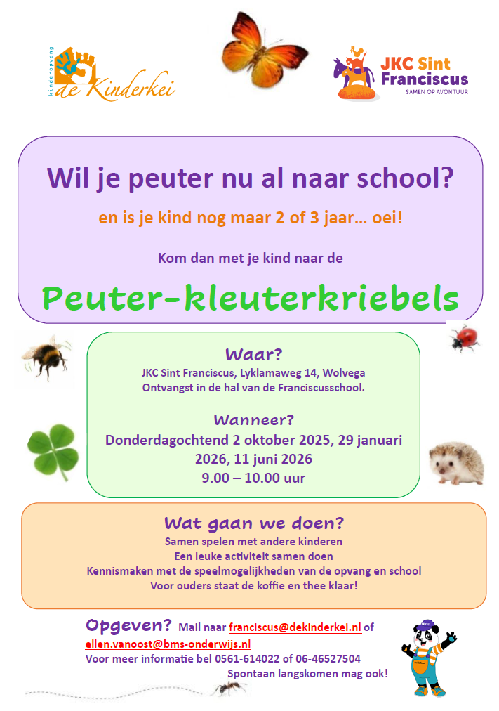 De Peuter- en kleuterkriebels zijn voor alle kinderen, ook als je niet naar de Kinderkei gaat. Wees van harte welkom!